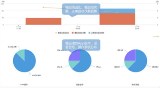慢启动页面可查看:首次启动、冷启动、热启动的慢启动占比;慢启动次数、正常启动次数及慢启动App版本、设备型号、操作系统分布情况。(慢启动定义为启动时间大于阈值的启动,阈值默认为3000ms)