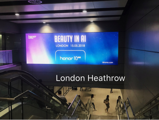 出现在伦敦希思罗机场的荣耀10发布会广告