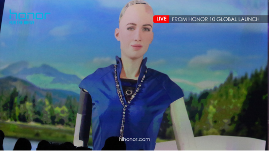 首位机器人女公民索菲亚现身荣耀10伦敦全球发布会,为AI摄影代言