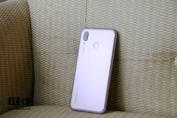 荣耀Play的背面是竖排双摄,摄像头凸起于背部面板,闪光灯在摄像头下方,同时闪光灯下方还有“AI CAMERA”的英文注解,看起来很有格调。背面左下角也有“honor”的Logo,竖排,和摄像头闪光灯位于同一条轴线上。另外,荣耀Play的背面还有一枚指纹识别按键,位于背面中央偏上。总的来说,荣耀Play的背面元素设计和华为的P20有些相似,除指纹识别按键外所有的元素都沿着摄像头所在的纵线排布,很有秩序感。