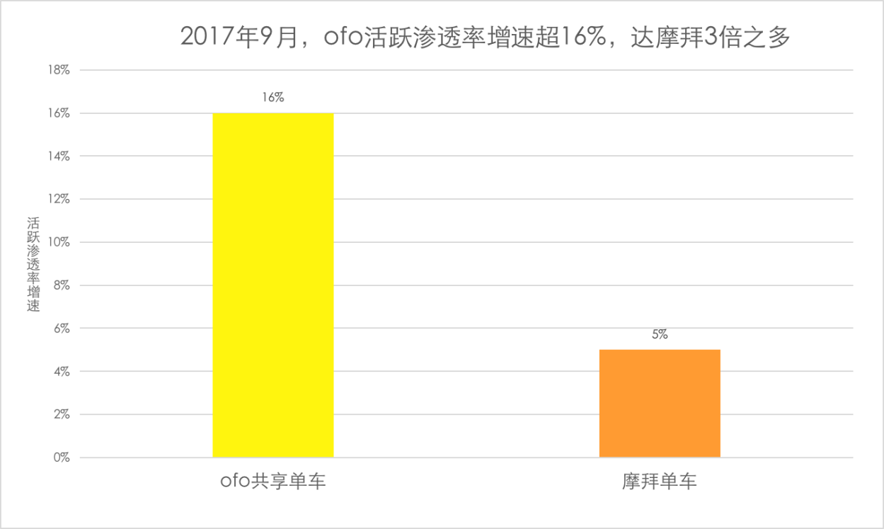 同时,ofo9月的月活用户规模环比上涨16.5%,其活跃用户规模增速也是摩拜的3倍。