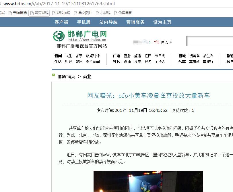 网友曝光:ofo小黄车凌晨在京投放大量新车