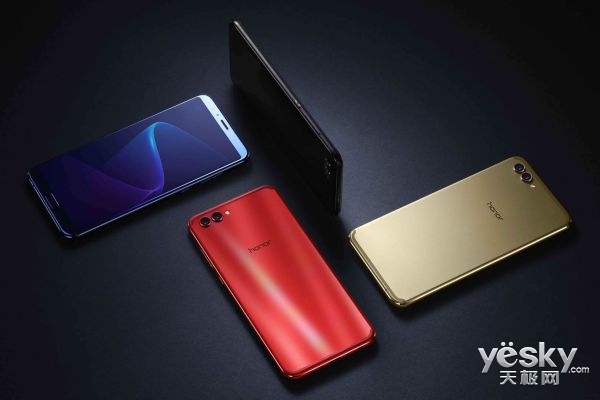 再来看看华为家的大荣耀。荣耀V10是和一加5T同天发布的手机,且同样是各方面都开挂。荣耀V10最大亮点主要是AI、性能、颜值和拍照,它正面配备一块5.99英寸18:9全面屏,分辨率为2160x1080。硬件上搭载麒麟970处理器,运行基于Android 8.0的EMUI 8.0系统,内置3750mAh容量电池,整个硬件水平属第一梯队旗舰级配置。