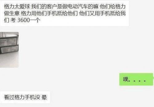 早在去年春节前夕,就曾传出格力用手机作为货款付给合作商的消息。当时曾有微博网友晒出图片,显示某电动汽车厂商(格力合作伙伴)与格力在合作过程中,遭遇格力提出用手机作为货款用于支付,而该厂商又以3600元每部的价格将手机抵给了其他合作伙伴。