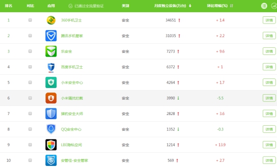近日,权威移动互联网第三方数据挖掘和整合营销机构艾瑞咨询发布了2017年10月App指数。数据显示,在安全类App榜单中,360手机卫士月独立设备数达34651万台,环比增长1.4%,位列榜单第一。