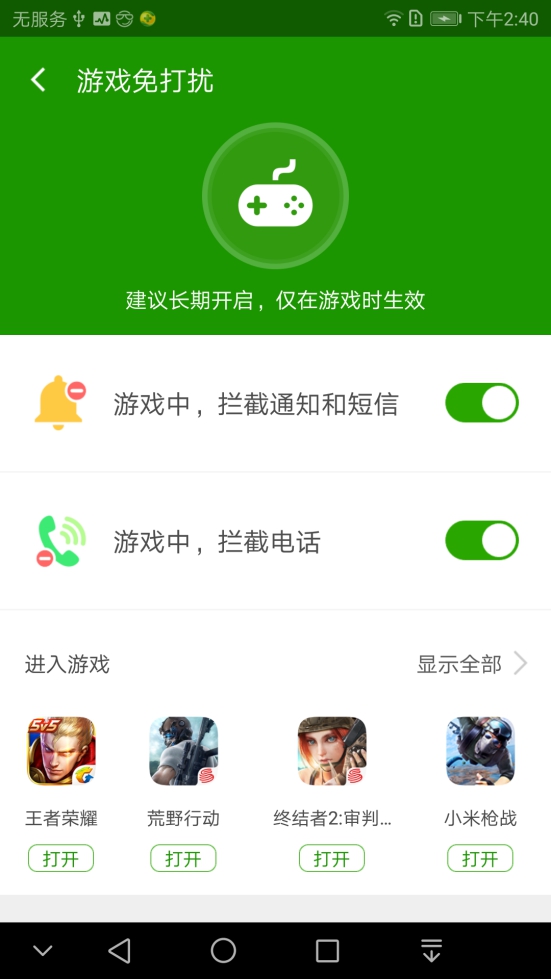 图四:360手机卫士 “游戏免打扰”功能